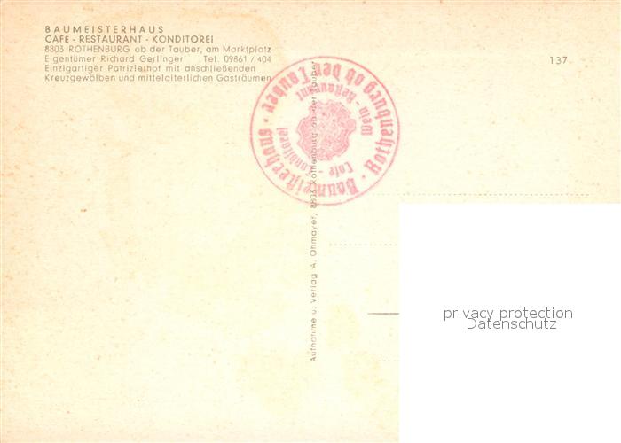 73010405 Rothenburg Tauber Baumeisterhaus Cafe Restaurant Konditorei postalisch nicht gelaufen Erhaltung siehe scans [WerneD78] KatCode: 11110009571193