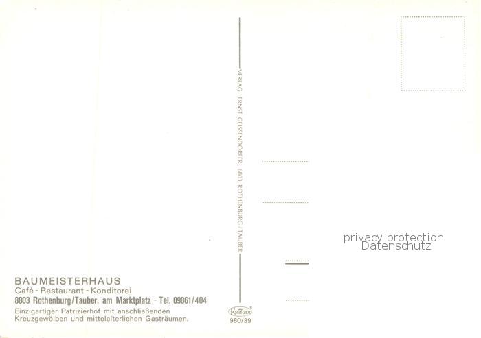 73777551 Rothenburg Tauber Baumeisterhaus Cafe Restaurant Konditorei Patrizierhof Gastraum postalisch nicht gelaufen Erhaltung siehe scans [FriedD77] KatCode: 11110009571193