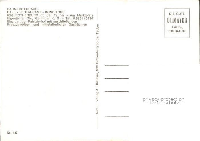 72140531 Rothenburg Tauber Baumeisterhaus Cafe Restaurant Patrizierhof mit Kreuzgewoelbe postalisch nicht gelaufen Erhaltung siehe scans KatCode: 11110009571193