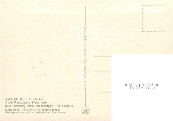 72638136 Rothenburg Tauber Baumeisterhaus Restaurant Cafe postalisch nicht gelaufen Erhaltung siehe scans [WerneD78] KatCode: 11110009571193