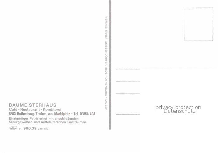 72767600 Rothenburg Tauber Baumeisterhaus Restaurant Cafe postalisch nicht gelaufen Erhaltung siehe scans [LiesaD40] KatCode: 11110009571193