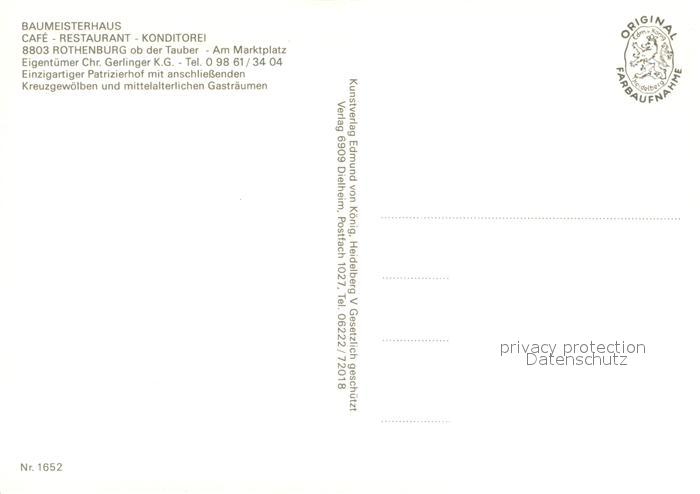 73654859 Rothenburg Tauber Baumeisterhaus Restaurant postalisch nicht gelaufen Erhaltung siehe scans [WerneD78] KatCode: 11110009571193