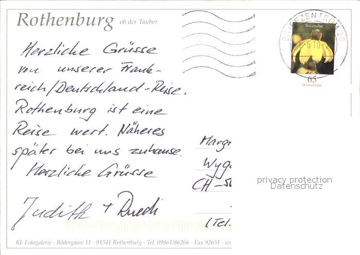 72585556 alte Postkarte Rothenburg Tauber Burgtor Rathaus postalisch gelaufen Erhaltung siehe scans [AndreD76] KatCode: 11110009571193