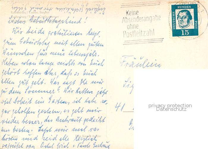 73313043 alte Postkarte Rothenburg Tauber Burgtor postalisch gelaufen Erhaltung siehe scans [NatalD47] KatCode: 11110009571193