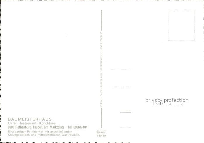 71989091 Rothenburg Tauber Cafe Restaurant Baumeistehaus postalisch nicht gelaufen Erhaltung siehe scans KatCode: 11110009571193