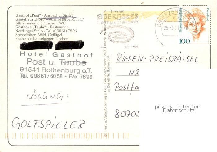 73714657 alte Postkarte Rothenburg Tauber Dreyers Gasthooefe Aussenansichten postalisch gelaufen Erhaltung siehe scans [LiesaD40] KatCode: 11110009571193