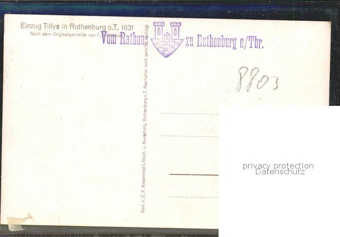 71832903 Rothenburg Tauber Einzug Tillys Kuenstlerkarte F. Birkmeyer postalisch nicht gelaufen Erhaltung siehe scans KatCode: 11110009571193
