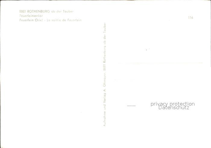 72310496 Rothenburg Tauber Feuerleinserker postalisch nicht gelaufen Erhaltung siehe scans KatCode: 11110009571193
