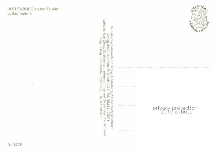 72905791 Rothenburg Tauber Fliegeraufnahme postalisch nicht gelaufen Erhaltung siehe scans [FriedD77] KatCode: 11110009571193