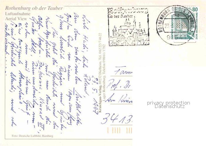 72905790 alte Postkarte Rothenburg Tauber Fliegeraufnahme postalisch gelaufen Erhaltung siehe scans [FriedD77] KatCode: 11110009571193
