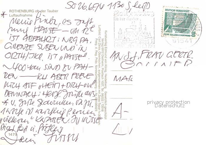 72859859 alte Postkarte Rothenburg Tauber Fliegeraufnahme postalisch gelaufen Erhaltung siehe scans [LiesaD40] KatCode: 11110009571193