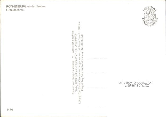 72422725 Rothenburg Tauber Fliegeraufnahme postalisch nicht gelaufen Erhaltung siehe scans KatCode: 11110009571193