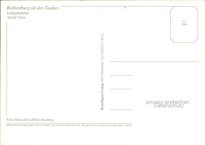 72321382 Rothenburg Tauber Fliegeraufnahme postalisch nicht gelaufen Erhaltung siehe scans KatCode: 11110009571193