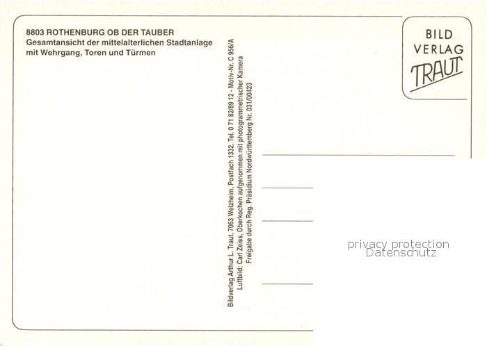 73041164 Rothenburg Tauber Fliegeraufnahme mit mittelalterlicher Stadtanlage Wehrgang Toren und Tuermen postalisch nicht gelaufen Erhaltung siehe scans [WerneD78] KatCode: 11110009571193