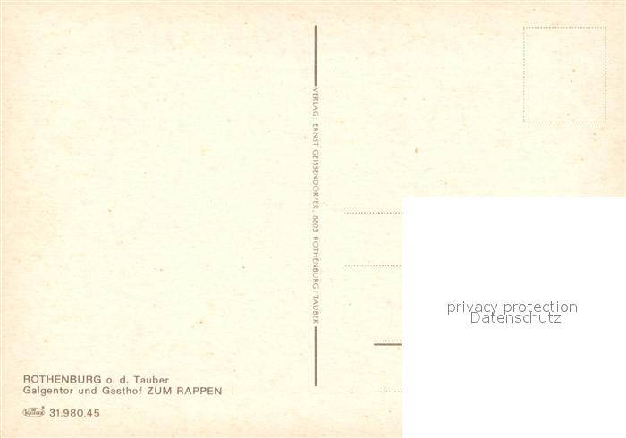 73229834 Rothenburg Tauber Galgentor Gasthof Zum Rappen postalisch nicht gelaufen Erhaltung siehe scans [KathaD81] KatCode: 11110009571193