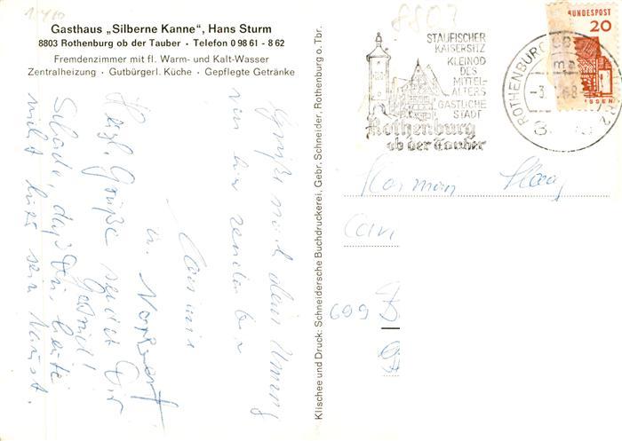 73891652 alte Postkarte Rothenburg Tauber Gasthaus Silberne Kanne Gaststube postalisch gelaufen Erhaltung siehe scans [FriedD77] KatCode: 11110009571193