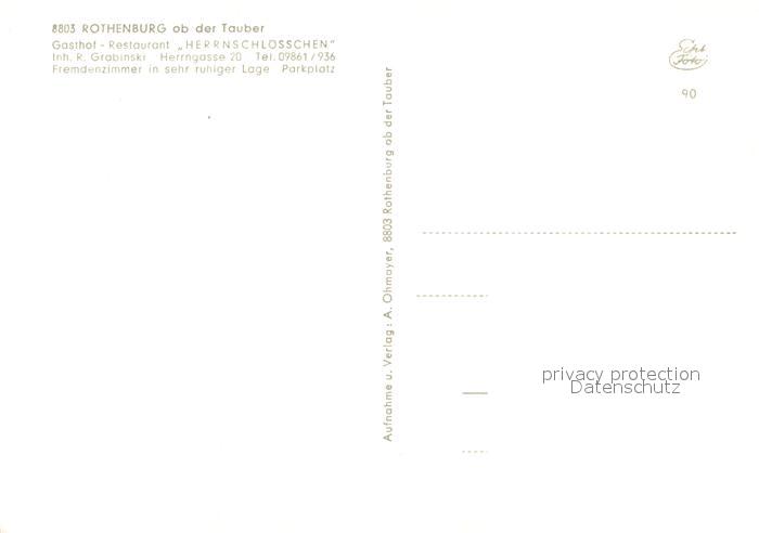 73045576 Rothenburg Tauber Gasthof Restaurant Herrnschloesschen Kuenstlerkarte postalisch nicht gelaufen Erhaltung siehe scans [KathaD81] KatCode: 11110009571193