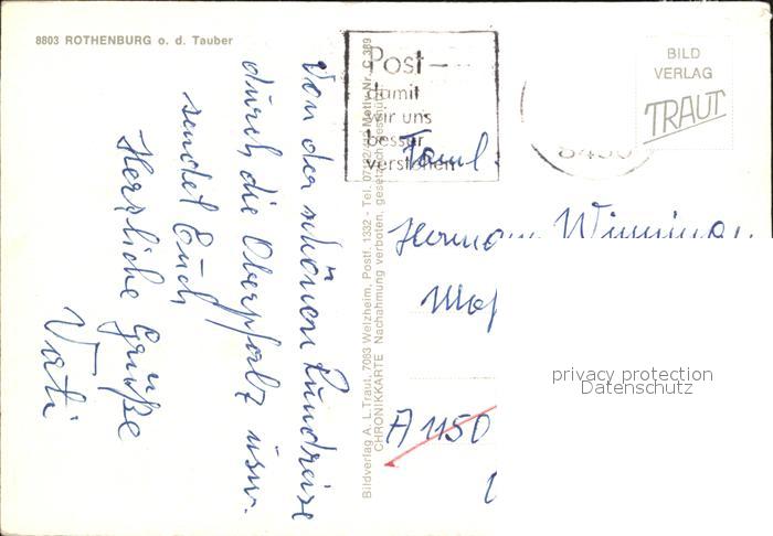 alte Postkarte Rothenburg Tauber Gerlach-Schmiede Ploenlein Rathaus Markusturm postalisch gelaufen Erhaltung siehe scans