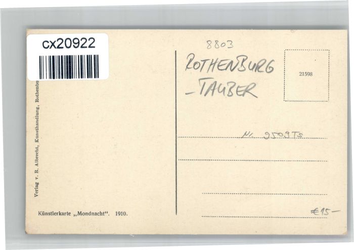 30739774 Rothenburg Tauber [handschriftlich] postalisch nicht gelaufen KatCode: 11110009571193