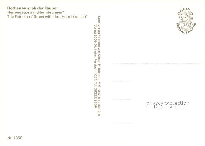 73229841 Rothenburg Tauber Herrengasse Herrnbrunnen postalisch nicht gelaufen Erhaltung siehe scans [KathaD81] KatCode: 11110009571193