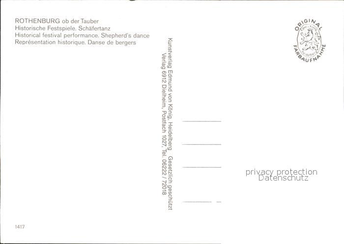72304567 Rothenburg Tauber Historische Festspiele Schaefertanz postalisch nicht gelaufen Erhaltung siehe scans KatCode: 11110009571193