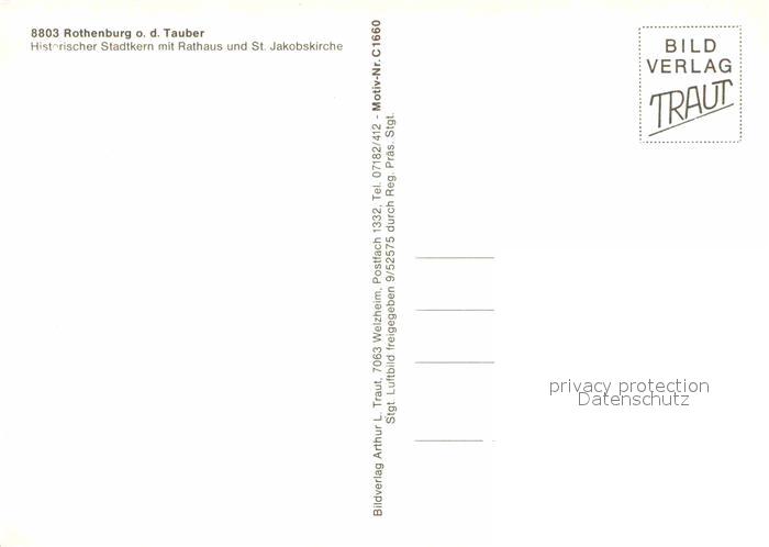 72840707 Rothenburg Tauber Historischer Stadtkern Rathaus St Jakobskirche Fliegeraufnahme postalisch nicht gelaufen Erhaltung siehe scans [FriedD77] KatCode: 11110009571193