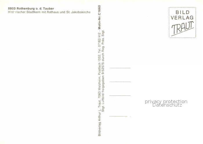 72833723 Rothenburg Tauber Historischer Stadtkern Rathaus St Jakobskirche Fliegeraufnahme postalisch nicht gelaufen Erhaltung siehe scans [FriedD77] KatCode: 11110009571193