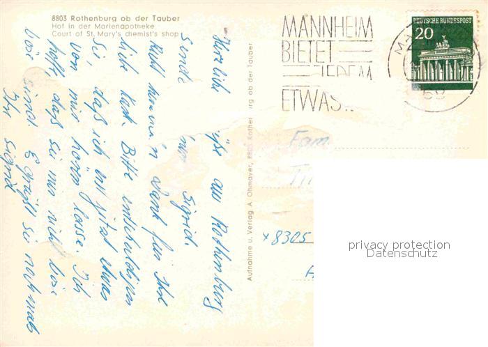 72624657 alte Postkarte Rothenburg Tauber Hof der Marienapotheke postalisch gelaufen Erhaltung siehe scans [WerneD78] KatCode: 11110009571193