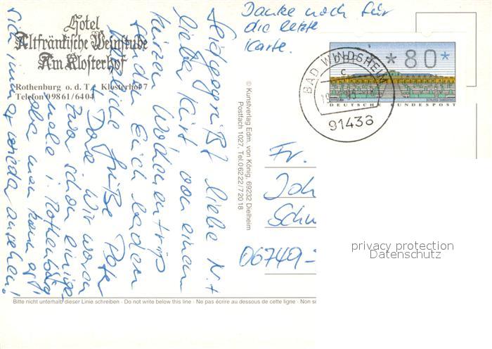 73663988 alte Postkarte Rothenburg Tauber Hotel Altfraenkische Weinstube Restaurant Fremdenzimmer postalisch gelaufen Erhaltung siehe scans [FriedD77] KatCode: 11110009571193