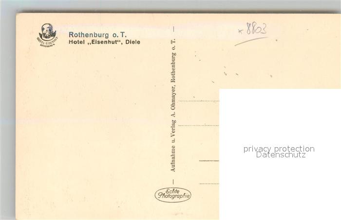 42958855 Rothenburg Tauber Hotel Eisenhut Diele postalisch nicht gelaufen Erhaltung siehe scans [PaolaD17] KatCode: 11110009571193