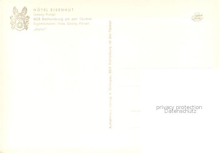 73644540 Rothenburg Tauber Hotel Eisenhut Halle postalisch nicht gelaufen Erhaltung siehe scans [FriedD77] KatCode: 11110009571193