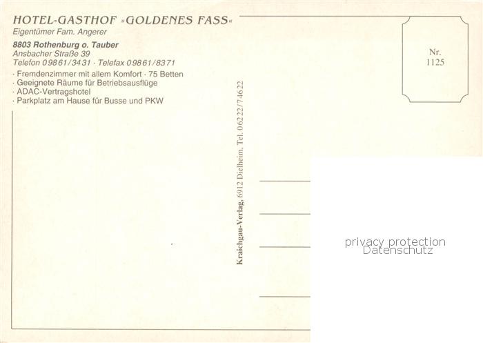 73777554 Rothenburg Tauber Hotel Gasthof Goldenes Fass postalisch nicht gelaufen Erhaltung siehe scans [FriedD77] KatCode: 11110009571193