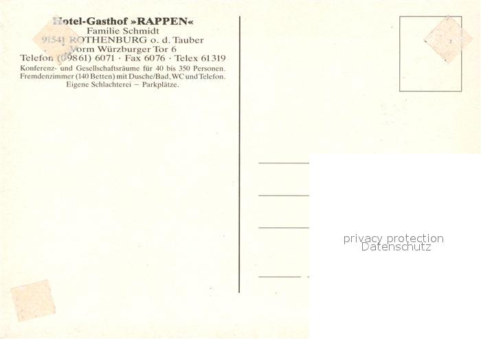 73032181 Rothenburg Tauber Hotel-Gasthof Rappen postalisch nicht gelaufen Erhaltung siehe scans [PaolaD17] KatCode: 11110009571193