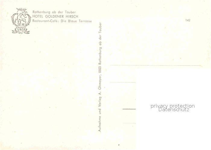 72832439 Rothenburg Tauber Hotel Goldener Hirsch postalisch nicht gelaufen Erhaltung siehe scans [NatalD47] KatCode: 11110009571193