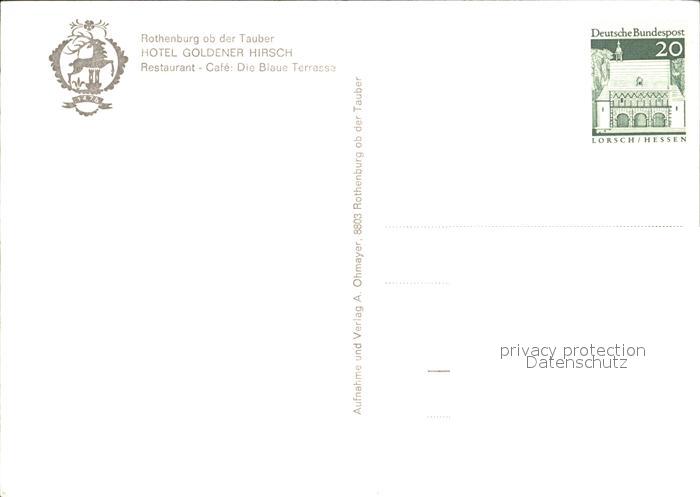 72209235 Rothenburg Tauber Hotel Goldener Hirsch postalisch nicht gelaufen Erhaltung siehe scans KatCode: 11110009571193