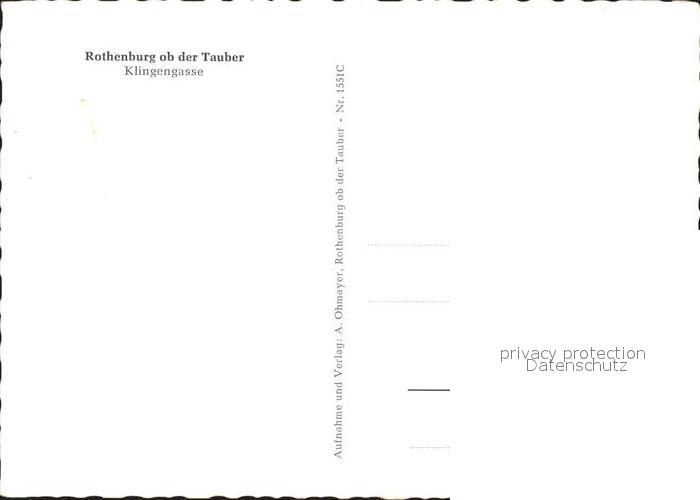 72259550 Rothenburg Tauber Klingengasse postalisch nicht gelaufen Erhaltung siehe scans KatCode: 11110009571193