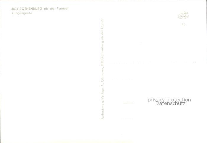72168321 Rothenburg Tauber Klingengasse postalisch nicht gelaufen Erhaltung siehe scans KatCode: 11110009571193