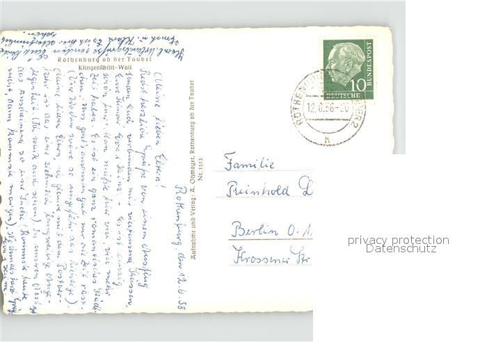 71933425 alte Postkarte Rothenburg Tauber Klingenschuett Wall postalisch gelaufen Erhaltung siehe scans KatCode: 11110009571193