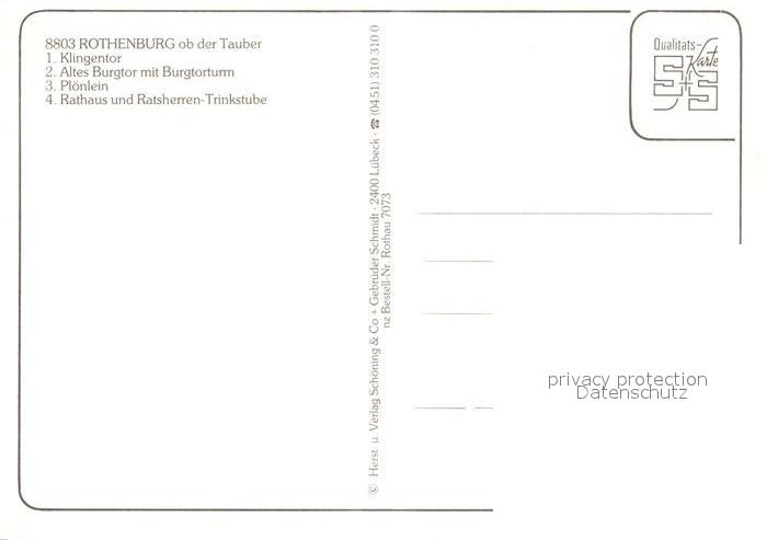 72986564 Rothenburg Tauber Klingentor Burgtor Ploenlein Rathaus Ratsherren Trinkstube postalisch nicht gelaufen Erhaltung siehe scans [LiesaD40] KatCode: 11110009571193