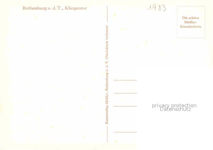 72889488 Rothenburg Tauber Klingentor Kuenstlerkarte L. Moessler postalisch nicht gelaufen Erhaltung siehe scans [LiesaD40] KatCode: 11110009571193