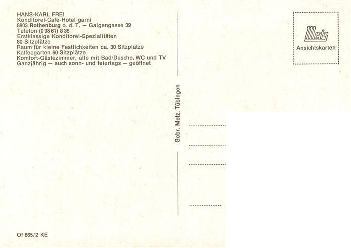 73877533 Rothenburg Tauber Konditorei Cafe Hotel garni Hans Karl Frei Gaststube Terrasse Zimmer postalisch nicht gelaufen Erhaltung siehe scans [WerneD78] KatCode: 11110009571193