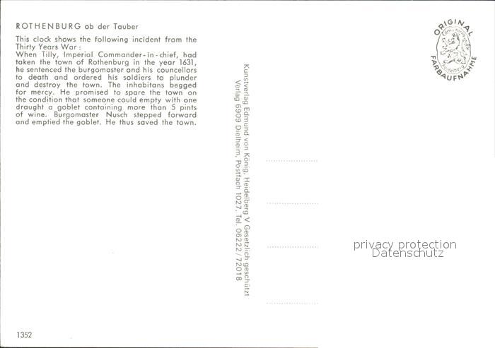 72321612 Rothenburg Tauber Kunstuhr an ehemaliger Ratstrinkstube postalisch nicht gelaufen Erhaltung siehe scans KatCode: 11110009571193