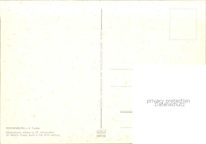 72583334 Rothenburg Tauber Markusturm postalisch nicht gelaufen Erhaltung siehe scans [LiesaD40] KatCode: 11110009571193