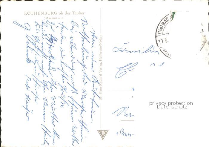 72374407 alte Postkarte Rothenburg Tauber Markusturm postalisch gelaufen Erhaltung siehe scans KatCode: 11110009571193