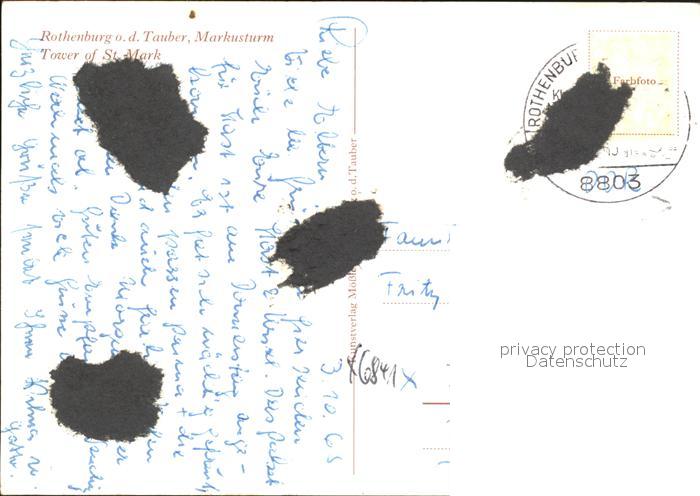72353955 alte Postkarte Rothenburg Tauber Markusturm postalisch gelaufen Erhaltung siehe scans KatCode: 11110009571193