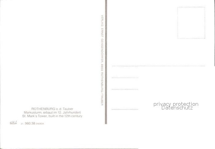 72307065 Rothenburg Tauber Markusturm erbaut 12. Jahrhundert postalisch nicht gelaufen Erhaltung siehe scans KatCode: 11110009571193
