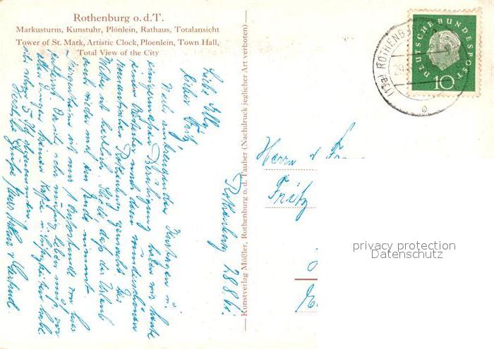73135449 alte Postkarte Rothenburg Tauber Markusturm Kunsttor Rathaus postalisch gelaufen Erhaltung siehe scans [NatalD47] KatCode: 11110009571193