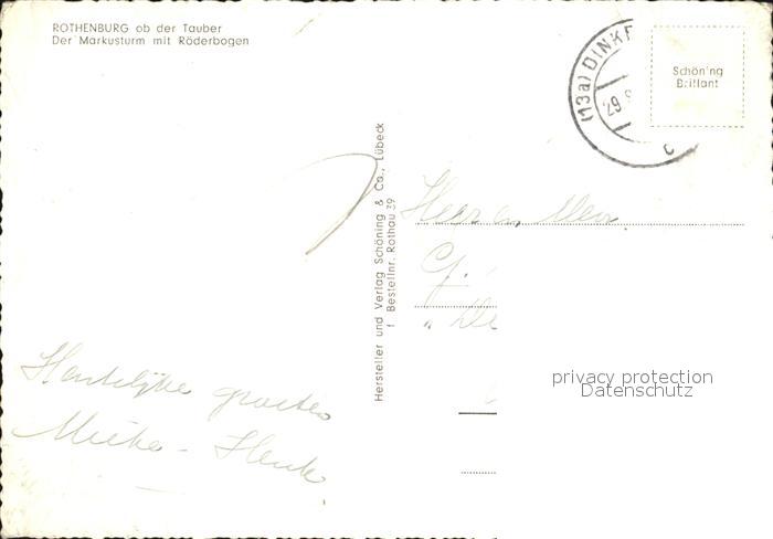 72392281 alte Postkarte Rothenburg Tauber Markusturm mit Roederbogen postalisch gelaufen Erhaltung siehe scans KatCode: 11110009571193