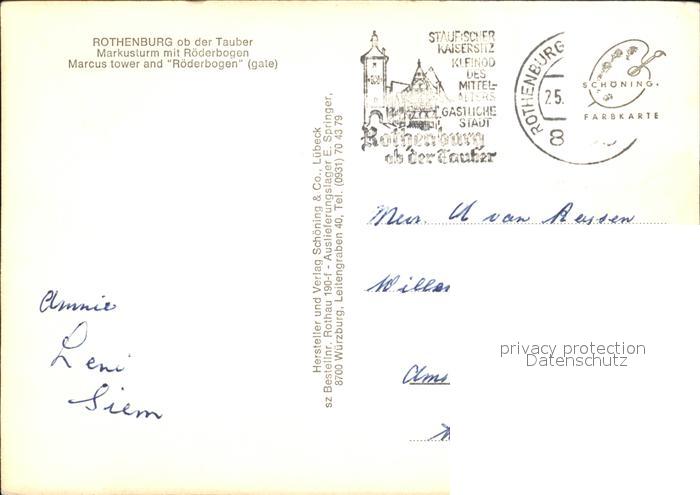 72430476 alte Postkarte Rothenburg Tauber Markusturm mit Roederbogen postalisch gelaufen Erhaltung siehe scans KatCode: 11110009571193