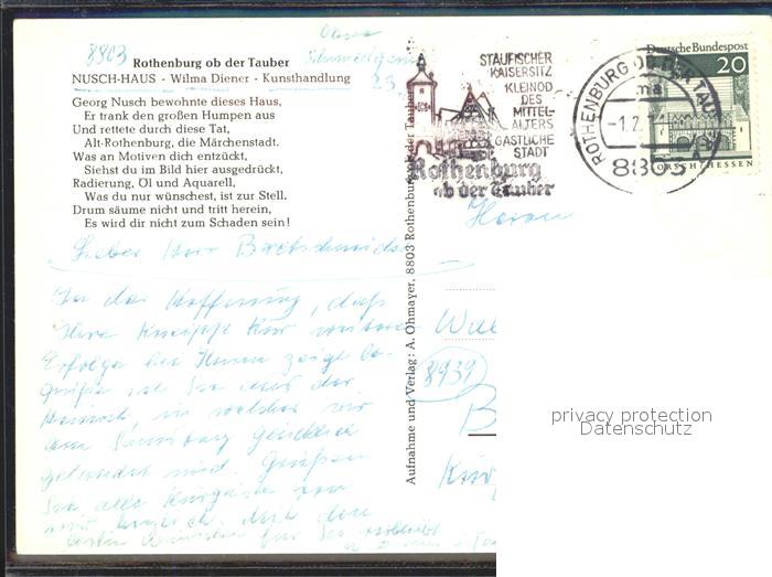 72151244 alte Postkarte Rothenburg Tauber Nuschhaus Kunsthandlung postalisch gelaufen Erhaltung siehe scans KatCode: 11110009571193